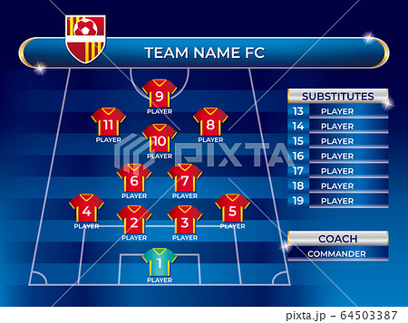 サッカー場 サッカーボール スタメン発表 ベクターイラスト