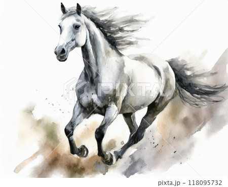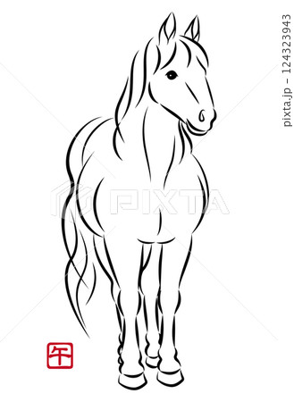 美しい白馬の立ち姿のイラスト 墨絵風でお洒落な午年の年賀状素材 ベクター