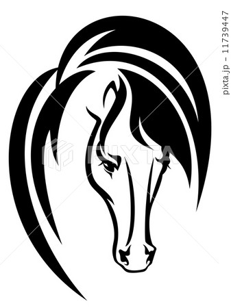 優しい目をした美しい白馬の顔のイラスト 墨絵風でお洒落な午年の年賀状素材 ベクター