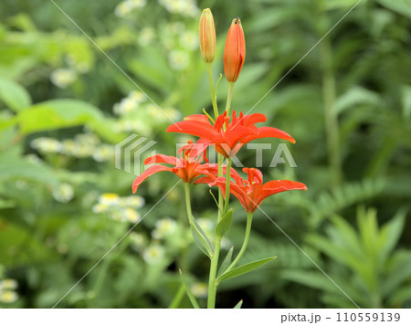 ヒメユリ(ヒユリ)のオレンジ色の花の風景