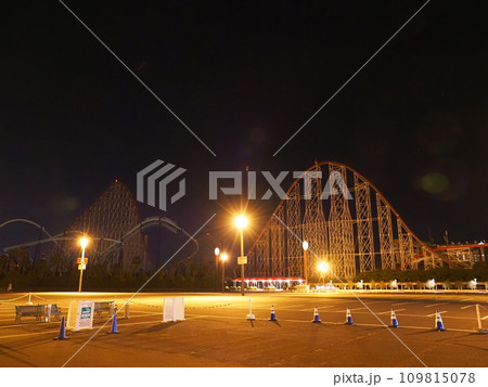 夜のジェットコースターのレール(ナガシマスパーランド・三重県桑名市)
