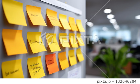 Kanban board with blank sticky note papers for writing task. Agile project management, tasks planning and to do list.