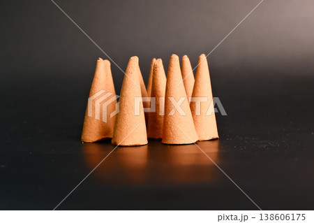 incense sandalwood cones on black background