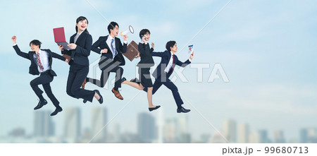 ジャンプする若いビジネスパーソンのグループ 就職活動 フレッシャーズ