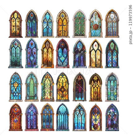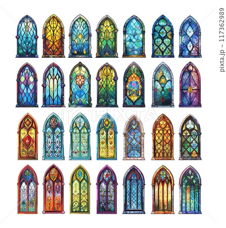 stained glass window set. stained glass mosaic antique stone magic. vector illustration cartoon
