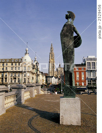 世界遺産 ベルギー アントワープ ステーン広場とノートルダム大聖堂