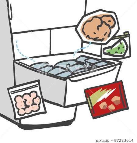 スーパーの大型冷凍庫で販売されている冷凍食品 セット イラスト素材