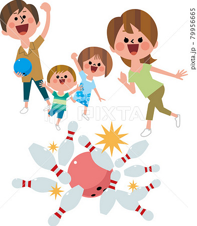 ボーリングでストライクを出して喜んでいる男の子のイラスト