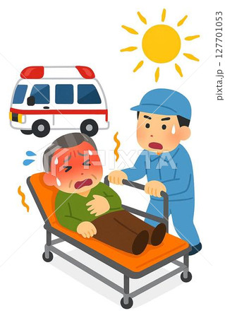 熱中症で救急搬送される高齢男性のイラスト