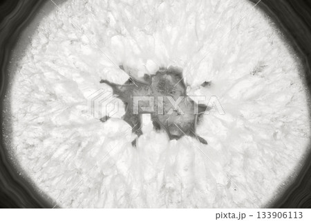 Amazing agate cut cross section. Natural crystal mineral formation. Beautiful texture macro photo background of precious stone color of 2026 year cloud white