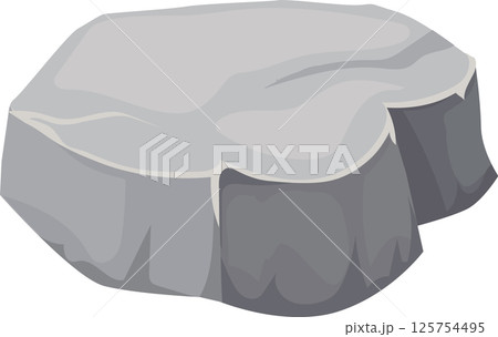 Cartoon vector illustration of a gray rock floating in the empty space, isolated on a white background, with smooth flat top surface and irregular bottom
