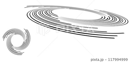 Circle abstract background with dynamic speed lines in spiral. Black shape on a white background and the same white shape on the black side.