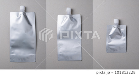 スパウト付スタンドパウチ(シルバー)3サイズセット/柄の無いモックアップ