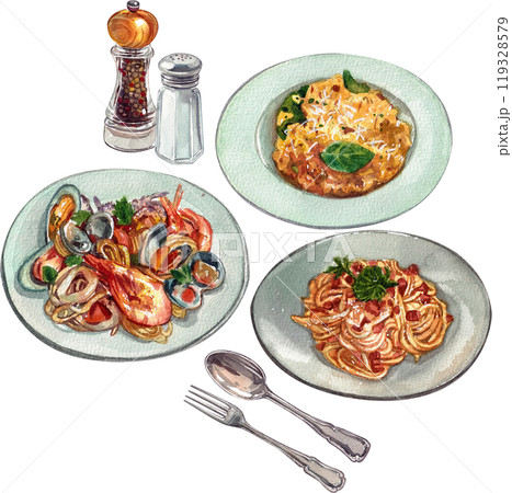 spaghetti italian food,watercolor painting hand-drawn illustration