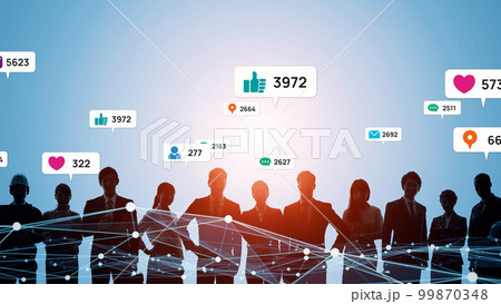 現代都市空撮とソーシャルネットワークのコンセプト
