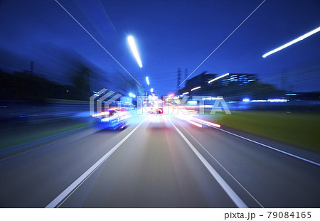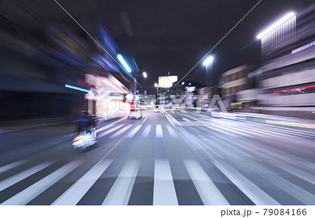 東京都内の交差点の夜景 車のライトのレーザービーム