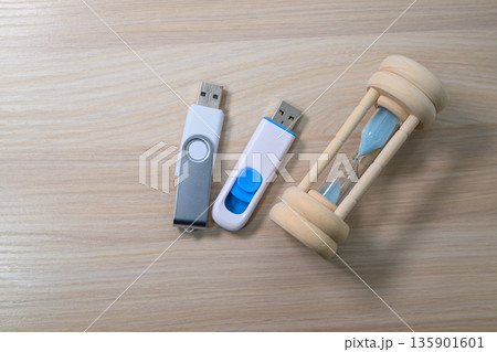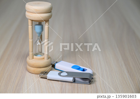 砂時計とUSBメモリによる待ち時間の表現