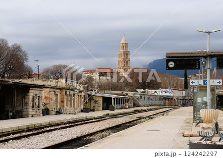 駅から見るディオクレティアヌス宮殿の鐘楼 スプリット 世界遺産 クロアチア