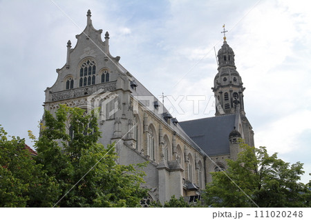 西ヨーロッパのベルギー アントワープ 世界文化遺産のノートルダム大聖堂の鐘楼が見える街並み