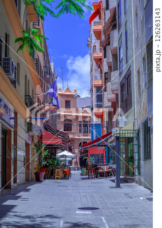 スペイン バルセロナ カタルーニャ音楽堂周辺の路地 5月の晴れの日
