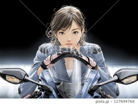 女性ライダーのイラスト素材 正面 走行 スタジオ