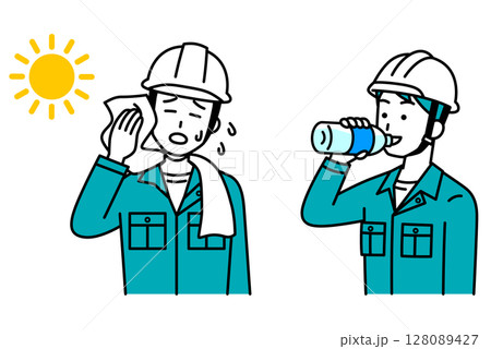 熱中症対策をする作業員の男性 セット