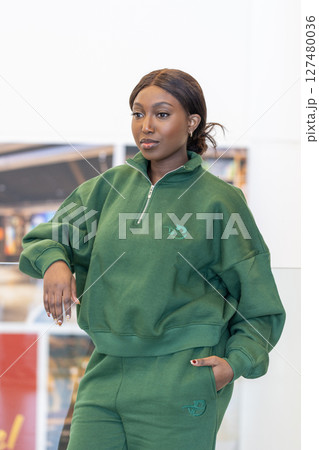 A stunning model in stylish green athletic wear that effortlessly captures attention