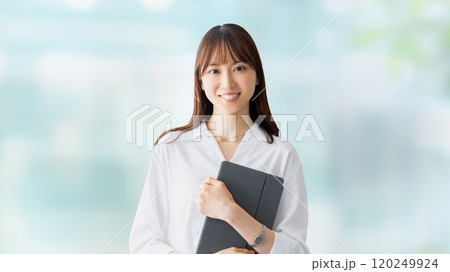 ノートパソコンを持つ笑顔の女性・ビジネスウーマン