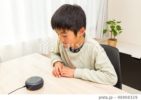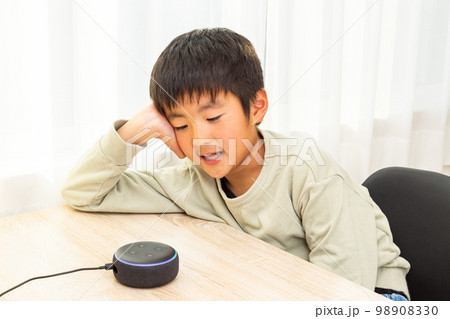 スマートスピーカーに話しかける男の子