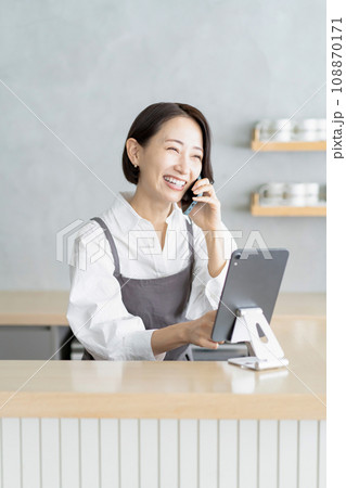 ビジネスイメージ カフェで働く スマレジで注文を受ける女性
