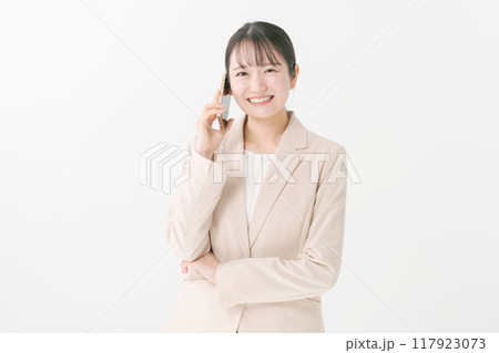 スマホを使うビジネスパーソン 撮影協力:有明教育芸術短期大学