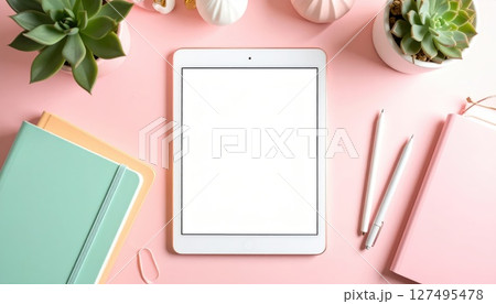《AI画像》Z世代をイメージしたパステルカラーの背景とタブレット端末