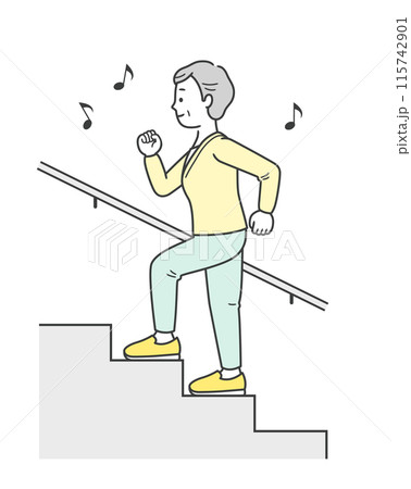 元気に階段を上る高齢女性と辛そうな高齢女性のイラスト