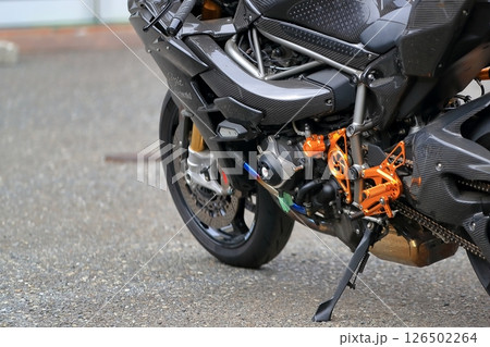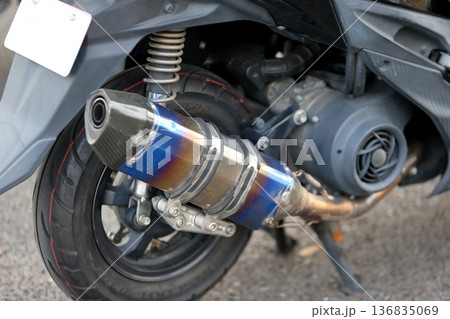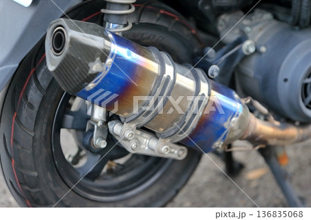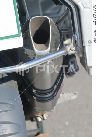 バイクのマフラーのクローズアップ