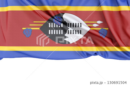Flag of Eswatini (Swaziland) isolated on white background with copy space below. 3D rendering