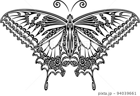 トライバル風でグラフィカルなアゲハ蝶のシルエット
