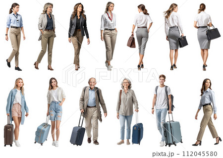 オフィスで働く女性とスーツケースを持った人の切抜き素材集(背景透過)