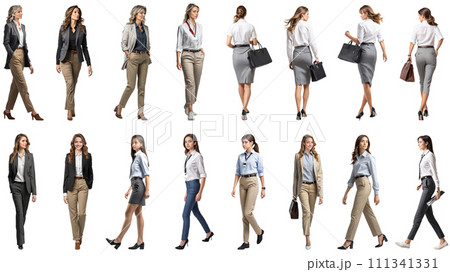 オフィスで働く女性の切抜き素材集1(背景透過)