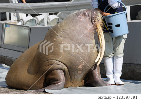 セイウチと飼育員