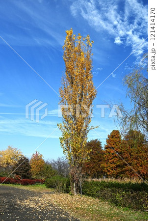 ポプラ並木の紅葉【富士川クラフトパーク】