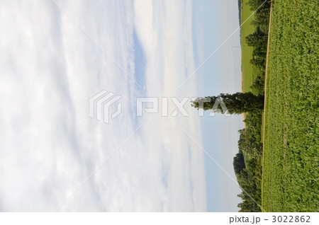 晴れた夕暮れの空と丘の上のポプラ 美瑛町