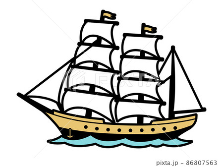Illustration of sailboat or ship. Marine or nautical image for travel or trip.