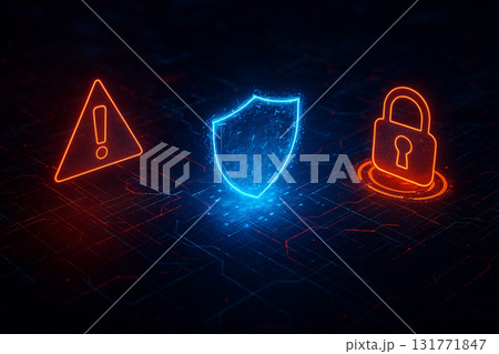 cybersecurity concept, Digital security threats represented by warning shields.