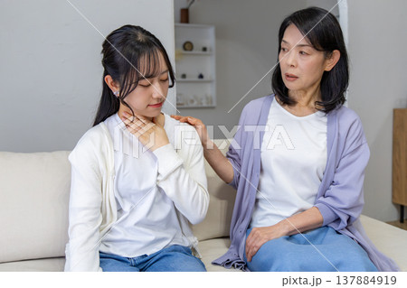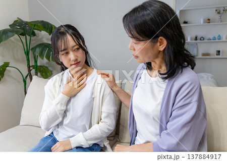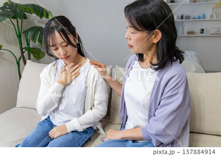 体調不良の娘と心配する母親