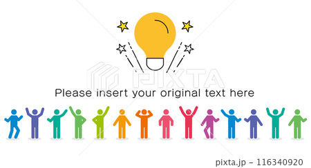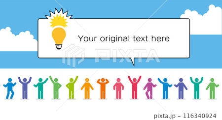 カラフルな群衆アイコンと吹きだしのタイトルイラスト