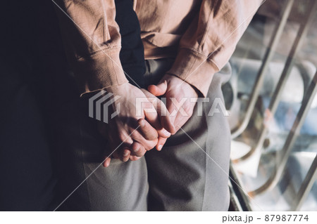 外を散歩する性的マイノリティの男性カップル 顔無し
