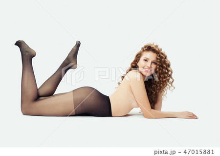 Portrait of happy woman in black tights