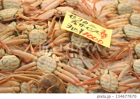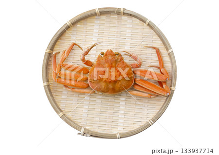 ザルに盛られたメスのズワイガニ セコガニ 冬の味覚