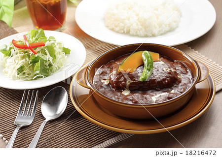 牛タンシチュー。ロールパン・サラダとのセットメニュー。(白皿・白バック)