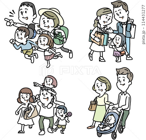 家族でお出かけのイラストセット